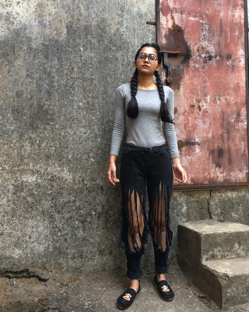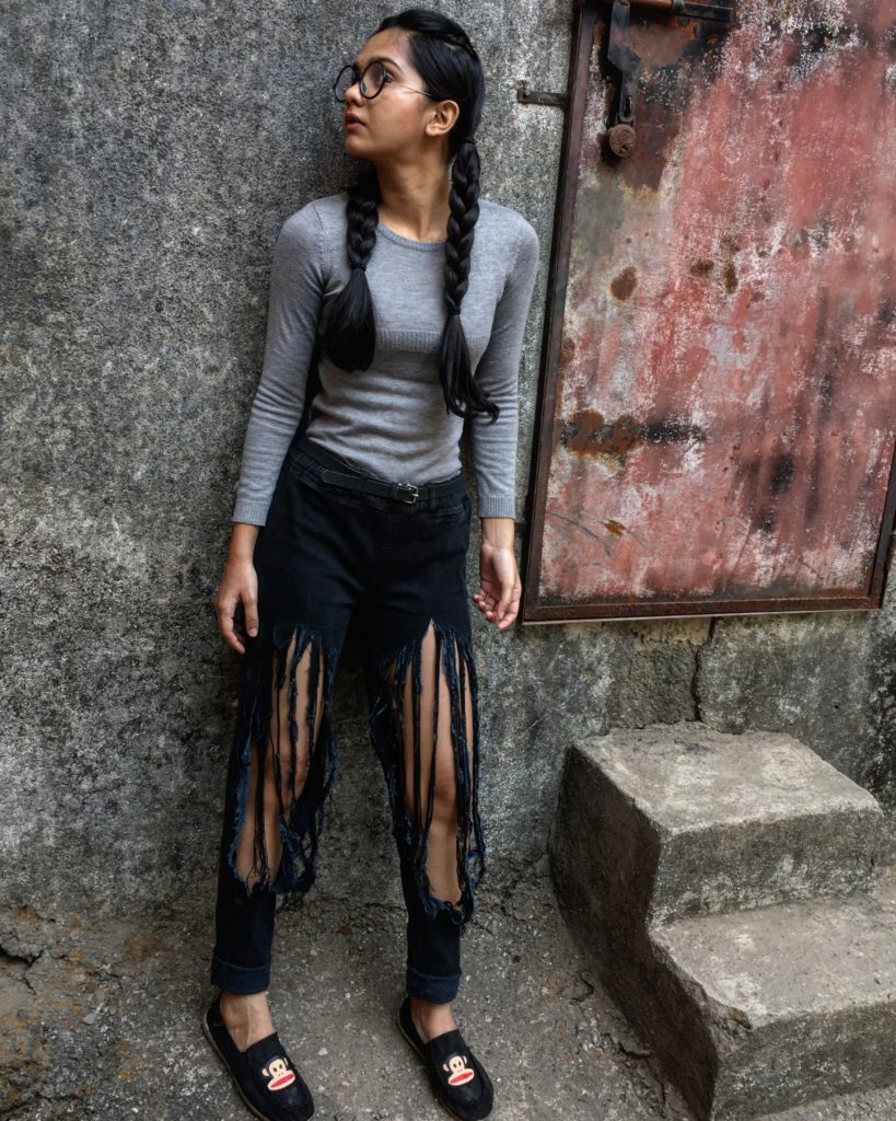 So I had gone for a trip to Mount Abu and we went trekking everyday. One of the days I decided to wear these pants because they were very comfortable, but they tore a little while trekking. So I thought why not rip the pants even more, so I ripped the pants further vertically (as you must have observed i am crazily in love with ripped pants) and Voila! I found my current favourite ripped pants. Also, i feel my experiment turned out just fine because these pants look super chic & I’m in love with it.