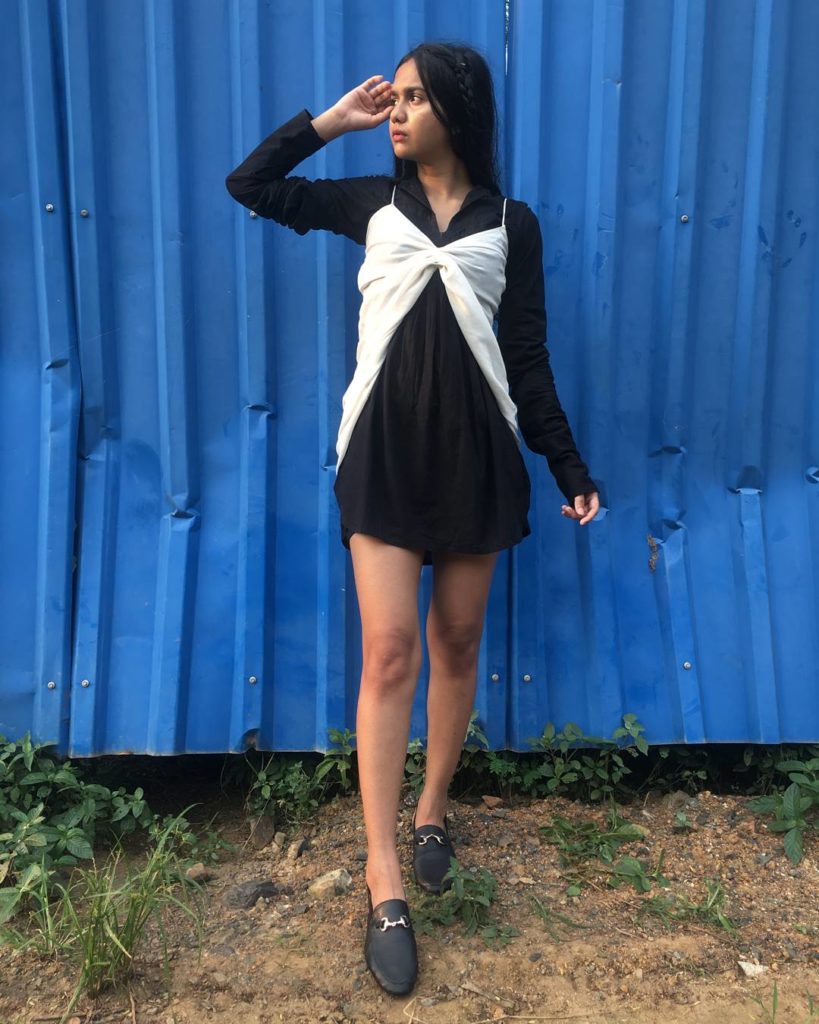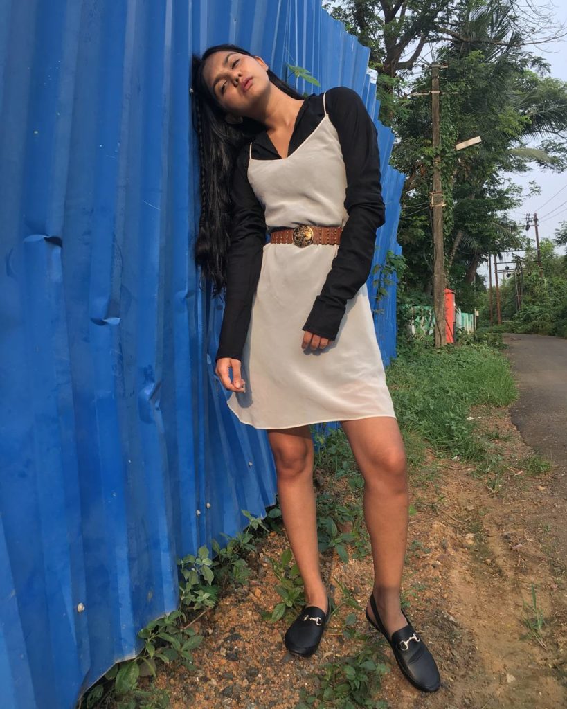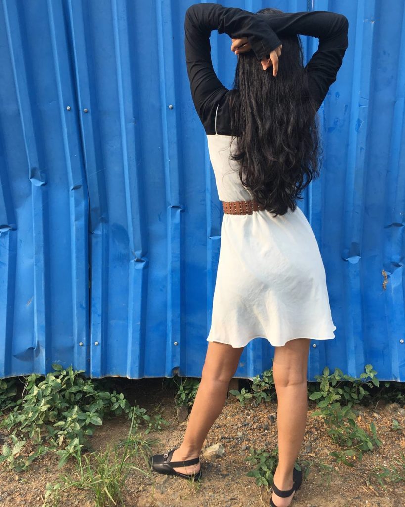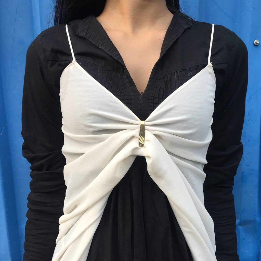 More than suggesting places to shop, I always wanted to give some ideas on how to style differently. It’s not about having tons of clothes in your wardrobe, but styling it smartly and pairing it with different things. Today’s look is about how you can style a slip dress in different ways without worrying about revealing your skin too much. I’ve gone completely monochrome in this look, with a white slip dress and a black kurta (yes kurta hahah). So the kurta was long enough to be worn as a dress but had small slits at the sides like the way all kurtas do, so I stitched it up a bit, to wear it like a dress.