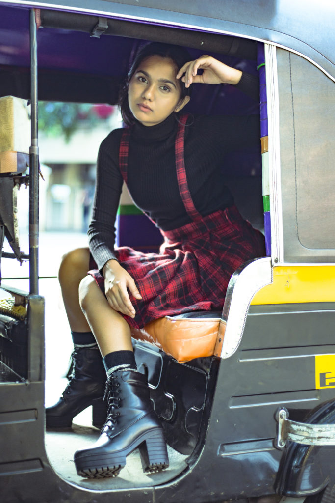 Wondering why I’m talking about the skirt? Well, that’s because I’m wearing something similar to it in this look. When I spotted this woolen cross the byline skirt, it just gave me a Deja vu & I knew I had to pick it up. Since its made of wool I decided to create a winter look & pair it with a polo neck top from Forever21. Last but not the least to get the whole Winter feel I added some printed socks with black boots.