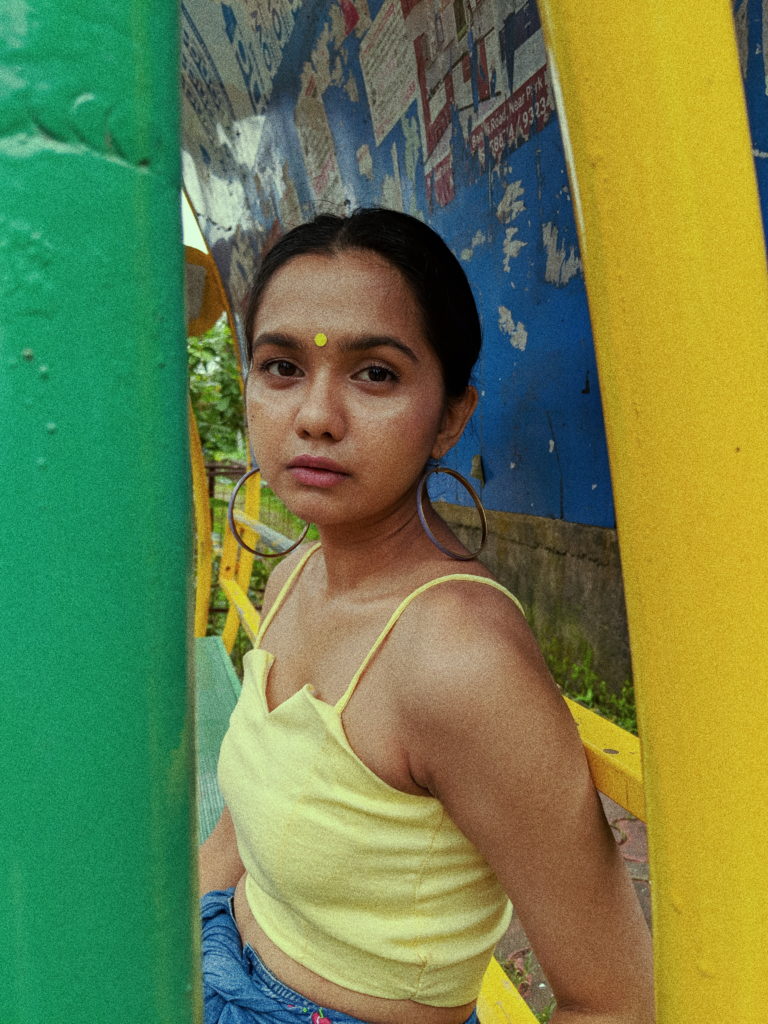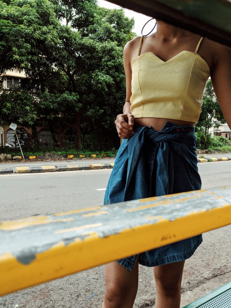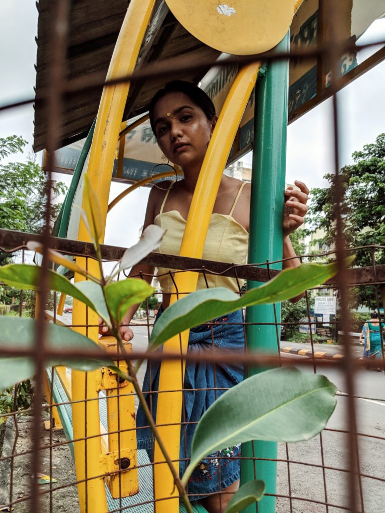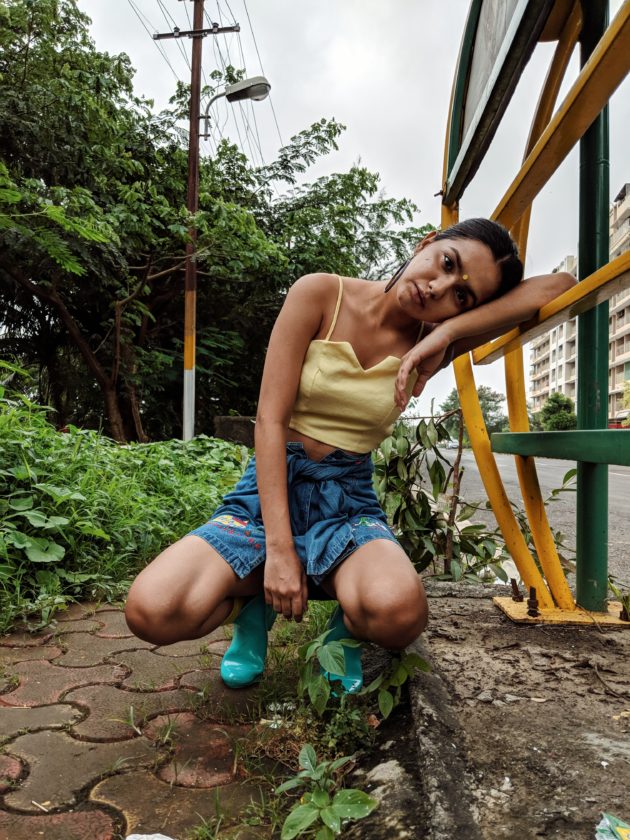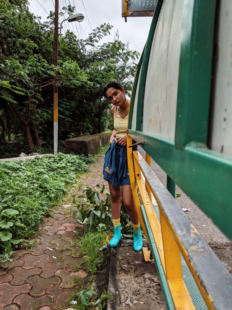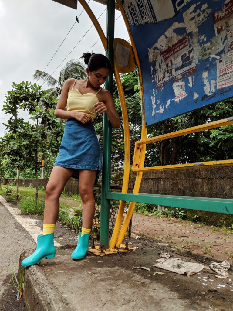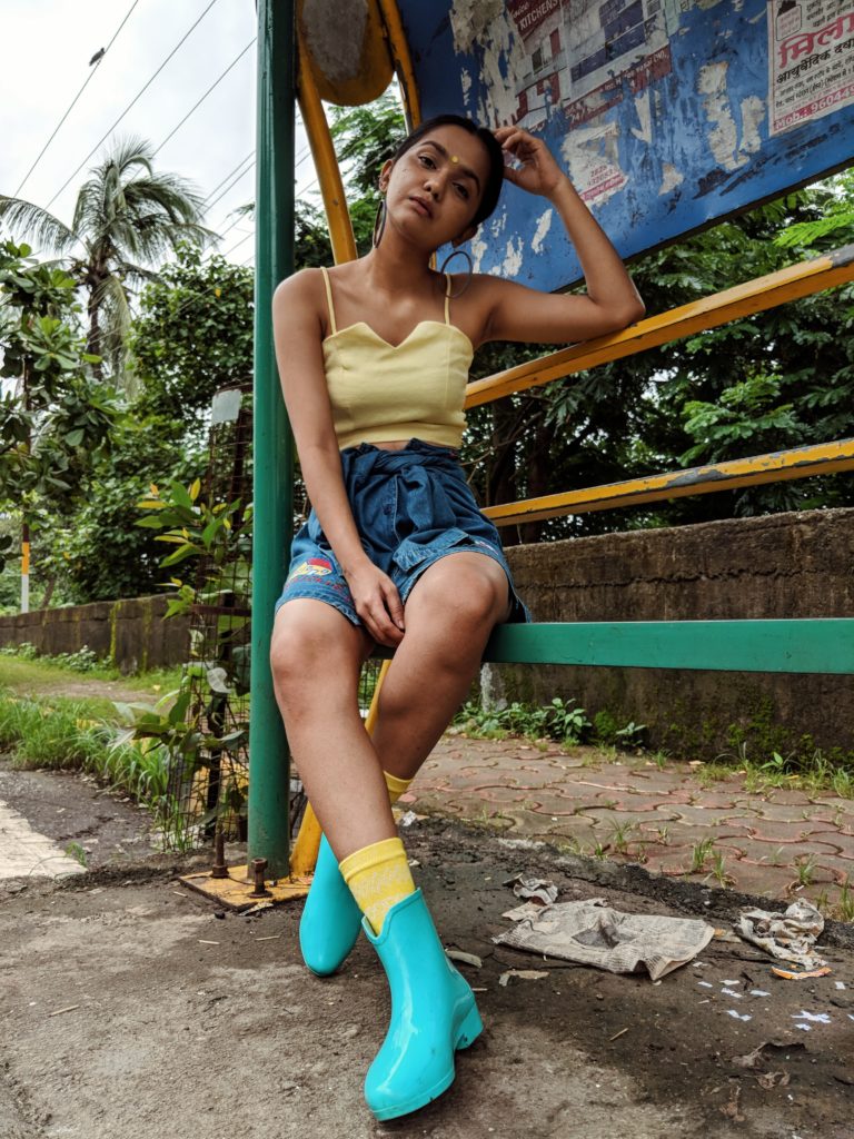 Well about the boots – I randomly happened to pick them from Mahim (my favourite street shopping place) for Rs 100 ONLY. Also, yellow wasn’t popping as much in this look, so I added a yellow bindi to make it pop hahaha.