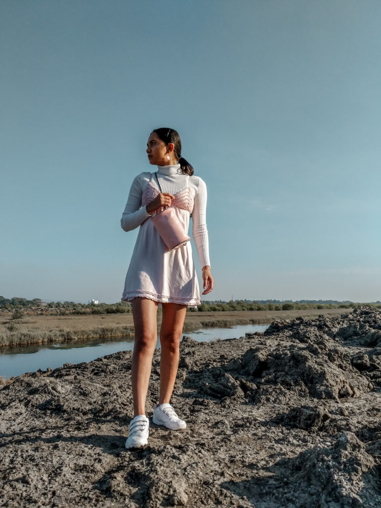 After creating this look, I realised I have another interesting piece which people usually wear under their clothes, it’s called a *slip*. It definitely comes in various styles but this one is a slip dress which someone would wear under their dress (people usually wear it under clothes that are a little transparent) but instead of wearing it under my dress I layered it over my dress & I’m in love with how it turned out. I wouldn’t say it’s the best thing to do but its something experimental that completely went in the right direction. I would actually love to see people styling it this way because I’ve come across very few people who actually experiment with something that might not be acceptable outside.
