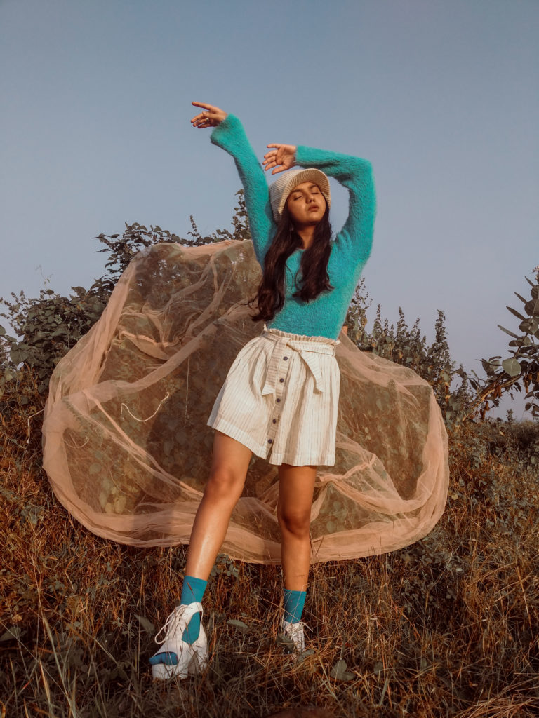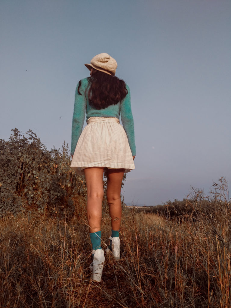 For some reason anything with buttons is fascinating to me, just like the skirt in this post. The skirt is from a sustainable brand called Sparrow. Sparrow? You already know how happy that word makes me, because sparrow is my favorite bird! So when I knew I was going to collaborate with a sustainable brand I was already happy but then I realised the name of the brand is Sparrow and that took my excitement to another level! Along with being a sustainable brand and having such a cool name, the fabrics of their clothing pieces are just amazing. I’m not an expert at telling you about the material in detail but from how much I know the material of this skirt was amazing. Comfort is the second great thing about this skirt because it’s a skirt from the outside but a pant from inside. The idea of wearing another layer below your skirt like a shorts or tights as you may call it just for the comfort or to save yourself from the embarrassment of your skirt flying off. It’s definitely not fascinating to layer something under my skirt, so this saves you from the fear of embarrassment as well as the effort of wearing something under your skirt.